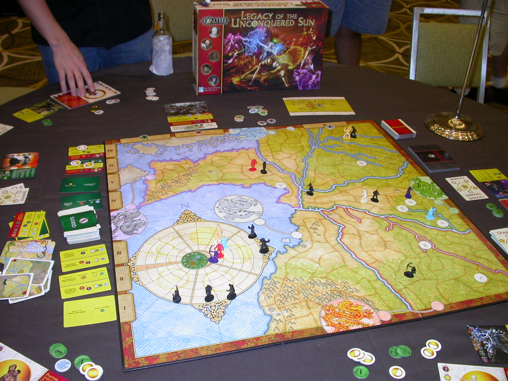 Kundenrezension:Zusammenfassung: Legacy of the Unconquered Sun ist ein Strategie Brettspiel für 2-5 Spieler, das auf der 2nd Edition von Exalted beruht. Man übernimmt die Rollen der Solar Signature Charaktere aus dem Grundregelwerk.
